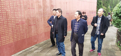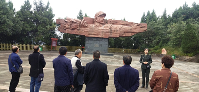 31日上午,考察组一行来到阆中黄花山红军纪念园,缅怀革命先烈的丰功伟绩。1935年3月,为策应中央红军北上,红四方面军在徐向前、李先念等领导下创建了川陕革命根据地,红军主力在阆中涧溪口等渡口成功强渡,展开了渡江与中央红军万里长征的壮丽史诗。调研组怀着对革命先辈的崇敬之情,瞻仰了杜光华等10名开国将军的塑像,登上象征着革命事业代代相传的223级园区阶梯,佇立在阆中籍8000革命烈士名录墙前,大家心潮澎湃,思绪万千,纷纷表示要不忘党恩,铭记光辉历史,传承红色基因,退而不休,永远跟党走。