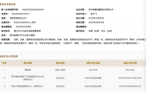 与此同时,贵州省新动能产业发展基金合伙企业(有限合伙)(以下简称“新动能产业基金”)占得24.6914%股份,新动能产业基金正式注资香港步长集团旗下的贵州洞酿洞藏酒业有限公司,跻身第二大股东。