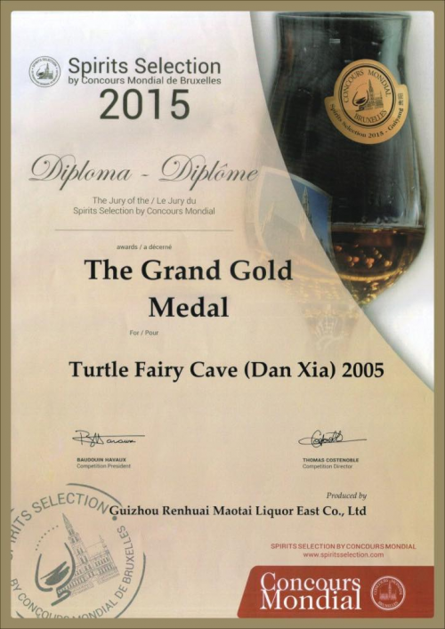 得益于优良的酿酒环境和古法酿造技艺,国帅·龟仙洞酒赢得了一系列荣誉: “2015布鲁塞尔大金奖”、 “巴拿马万国博览会金奖”、 “大世界基尼斯之最”、“溶洞发酵酿酱香型白酒工艺”国家发明专利、“大国酱香坐标品牌”、“华尊奖”、“非物质文化遗产”等荣誉。