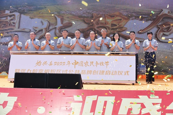 9月23日,以“庆丰收·迎盛会”为主题的始兴县2022年中国农民丰收节暨“张九龄宰相粉”区域公共品牌创建启动仪式在始兴县石下古村举行,嘉宾群众欢聚一堂,共庆丰收喜悦。