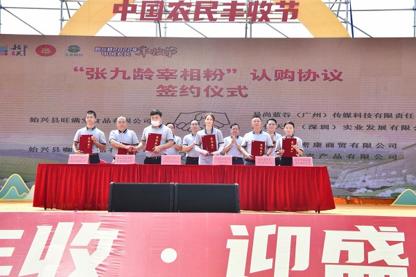 “张九龄宰相粉”区域公共品牌创建战略合作签约,企业代表“张九龄宰相粉”认购协议签约等同期举行。