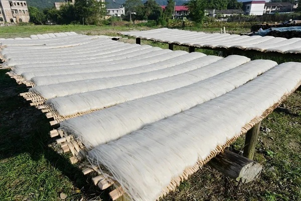 始兴县“张九龄宰相粉”始创于唐玄宗年间,传承至今有1300多年历史,是张九龄年幼时,其母用当地山稻米和山泉水,磨桨制成的一种米粉,给挑灯夜读的张九龄做夜宵,清末《始兴县乡土志》和民国《始兴县志》记载其为香粉。采用早、中、晚三季大米,经过14道非遗传承工艺制作而成。米粉外形为朝笏状,粉色晶莹清白,吃起来软滑清爽,具有“炒而不烂,煮而不糊”特点。嚼起来有劲道,吃起来有香味。