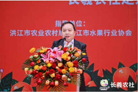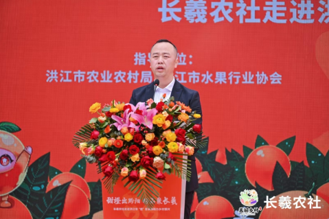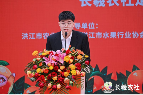 长羲中济数字农业公司董事长、长羲农社品牌创始人李锋淅先生在致辞中梳理和挖掘了黔阳冰糖橙文化、策划黔阳冰糖橙“小小个,双倍甜”宣传口号 、设计“橙湘湘和糖甜甜”IP形象、打造黔阳冰糖橙文创化产品包装以及全网矩阵式宣发曝光等经历。