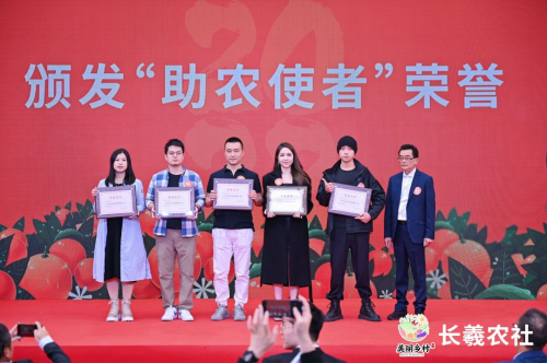 此外,现场还特别为长羲农社的助农达人们颁发了荣誉证书。达人代表感言:“荣誉在手、责任在肩,愿为助力乡村振兴尽自己的一份力,愿黔阳冰糖橙越走越远!”