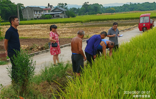 为落实国家粮食安全战略,金堂县老科协在2023年引进了原川农大教授水稻研究室副主任、现成都市老科协老专家周明镜教授团队研发的短生育期“天府稻花香”系列水稻新品种,在我县官仓街道办新水碾进行试验示范,在试验示范13个品种中筛选出最佳品种“天府稻花香5号”。为进一步总结技术,测试水稻种植的性状稳定性,今年,继续在官仓进行示范推广。