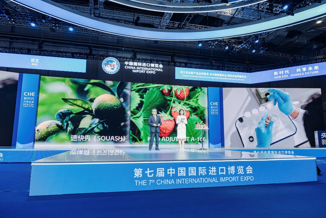 11月8日,花王亮相了央视主办的进博新品发布会,展示了其在绿色农业应用领域的新产品和新技术。上海花王化学有限公司董事长黒臺弘次先生亲临现场,细致介绍了包括全球首发的KAO ADJUVANT A-166固着剂和农作物增收剂在内的花王化学产品线新成员,以及首次亮相进博的农药助剂“速快秀(SQUASH)” 和进博会的“老朋友”——无人机植保专用助剂KAO ADJUVANT A-200。