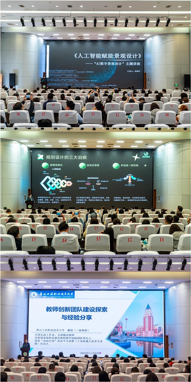 共同体年度工作会议落幕后,大会转入专家主旨报告环节。三位专家分别围绕教师创新团队建设、人工智能赋能景观设计、人工智能+规划设计作深度分享。报告既立足理论前沿,解析行业技术创新方向,又结合实际案例提供落地指导,为共同体各成员单位优化育人模式、推动技术升级提供了宝贵思路。